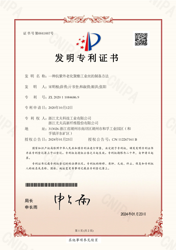 發明專利證書一種紡絲噴油嘴及其操作方法
