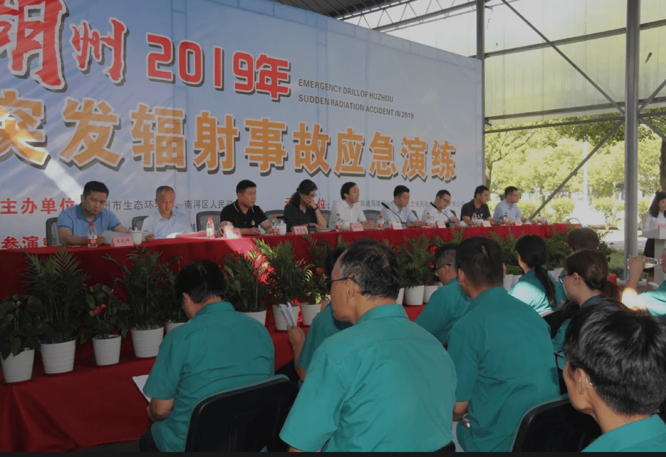 2019年8月30日,湖州市生態環境局、南潯區生態環境分局聯合在浙江尤夫高新纖維股份有限公司開展了2019年湖州市突發輻射事故應急演練。區委常委、常務副區長王劍峰,市生態環境局黨委委員、總工程師鄭云華等參加。