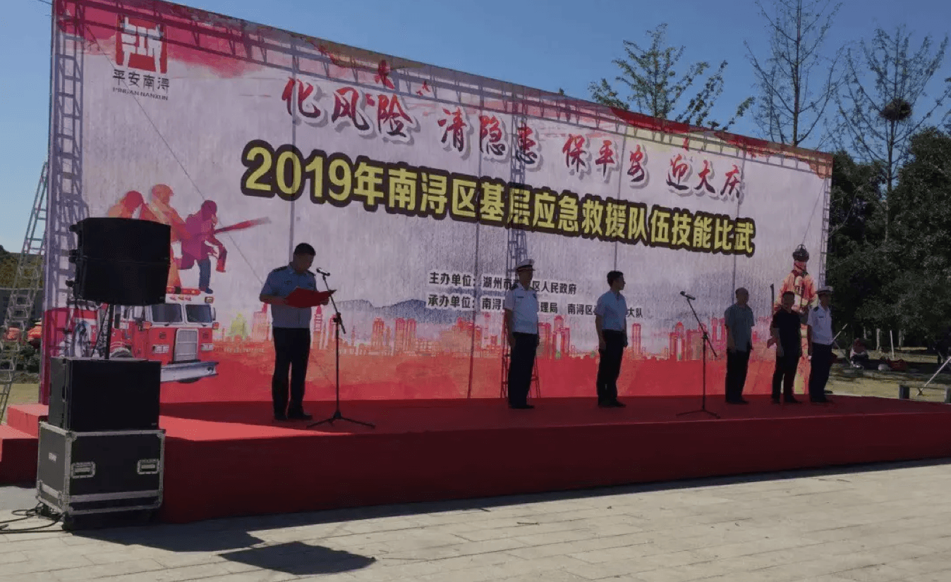 2019年9月18日下午,南潯區基層應急救援隊伍消防基礎技能比武社會單位微型消防站組比賽在南潯消防大隊駐地舉行。